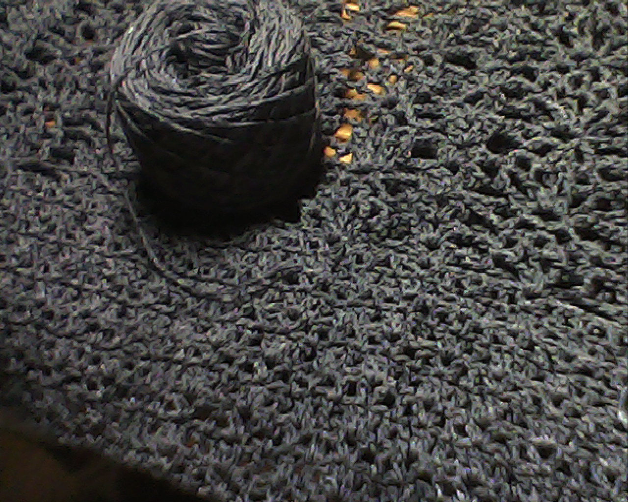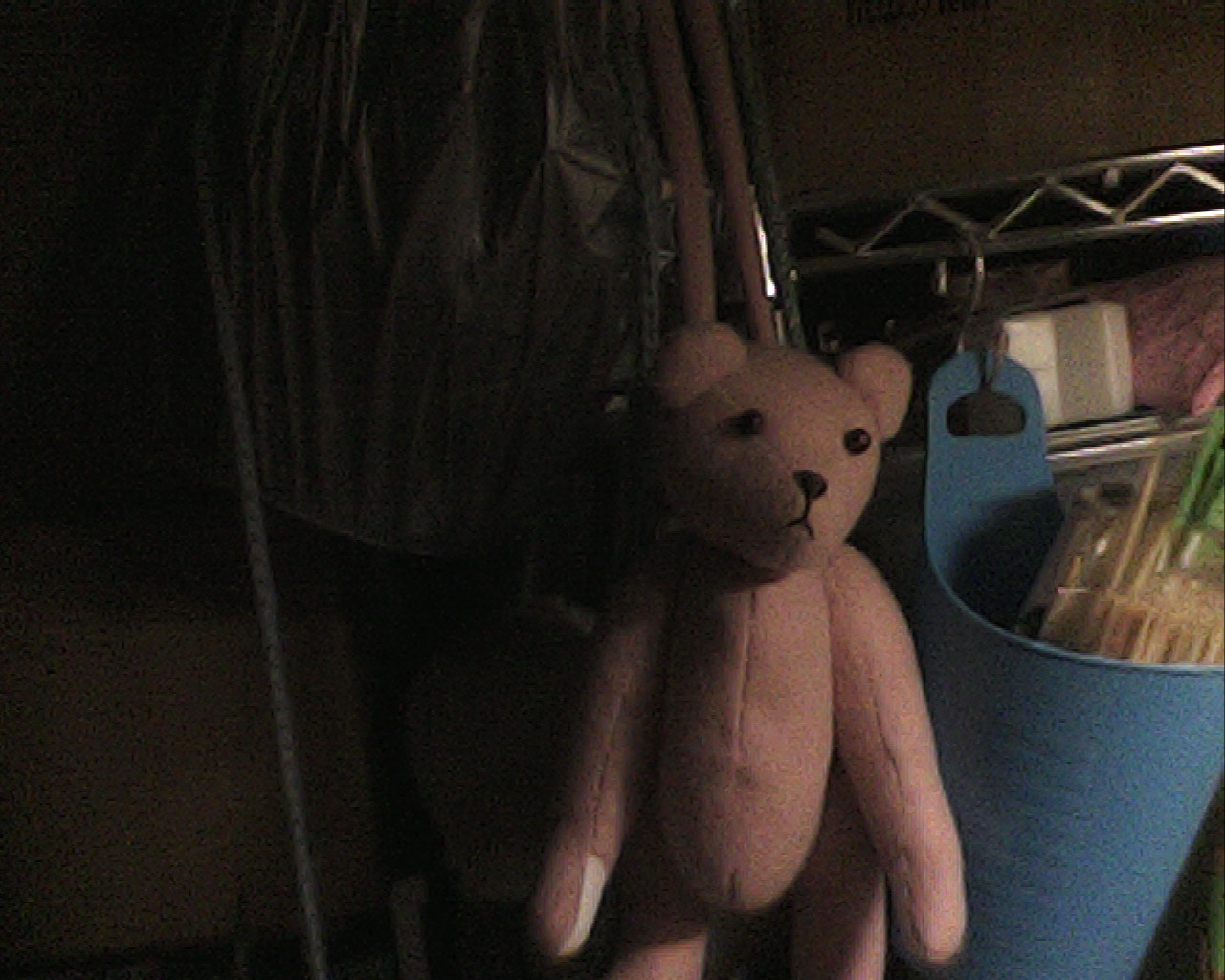 そんな暗い状況で、編みかけのニットと、くまのぬいぐるみバッグを撮影。